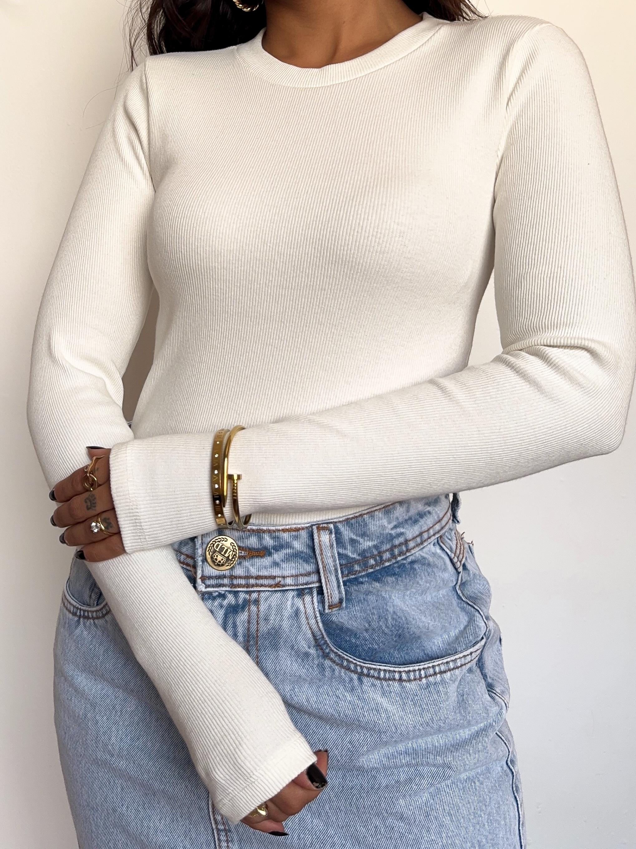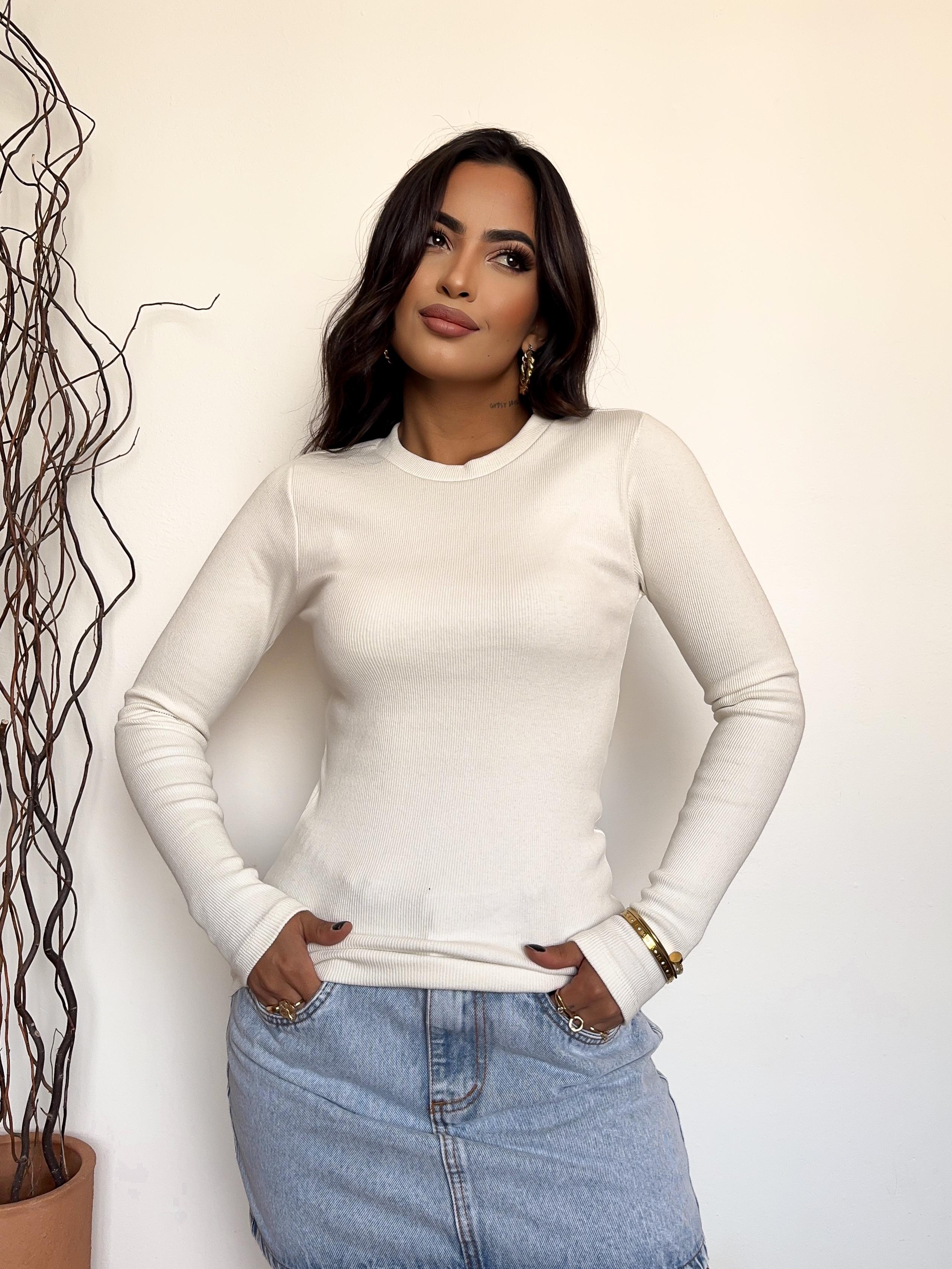 Se você achava que estilo e conforto eram como água e óleo, é hora de mudar essa percepção! A T-Shirt Manga Longa Off White chegou para mostrar que é possível ser elegante e relaxada, mesmo se você estiver apenas maratonando suas séries favoritas.